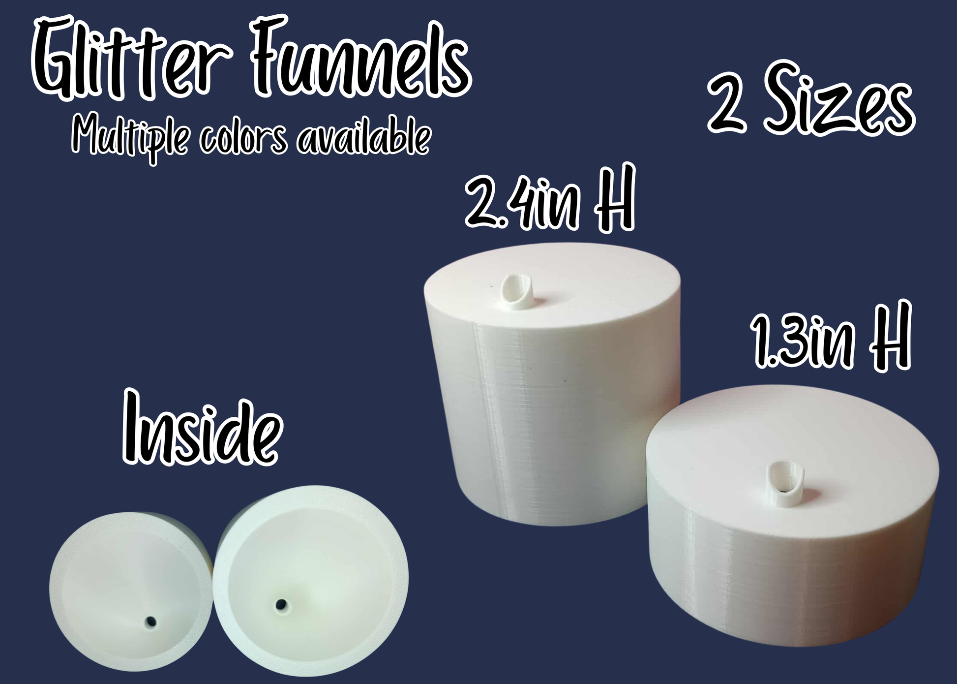 2 different funnels - Tall measures 2.4" x 2.5" and the Short measures 1.4" x 2.5"